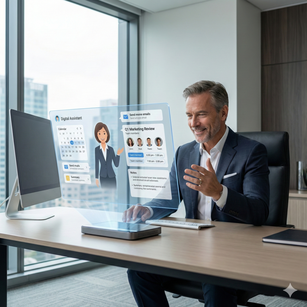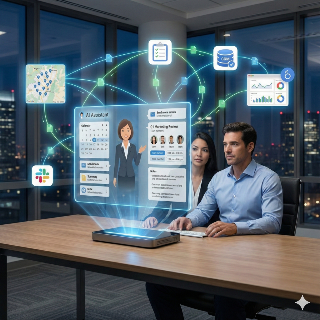Un CEO promedio gasta 23 horas/semana en emails, coordinación de reuniones, seguimientos y tareas administrativas. Un agente asistente gestiona tu agenda, redacta emails profesionales, coordina reuniones, hace seguimiento a pendientes y te prepara resúmenes de todo lo importante.